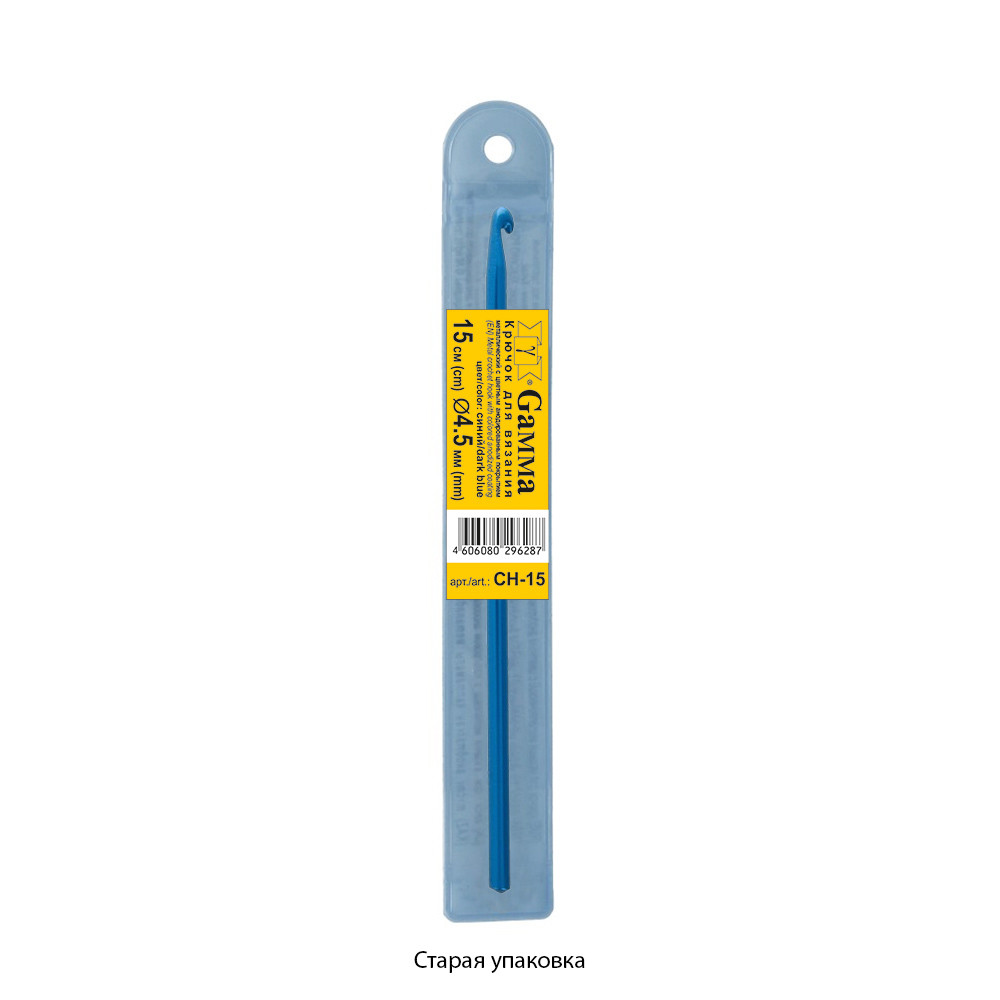Для вязания " Gamma" CH- 15 крючок цв. алюминий d 4. 5 мм 15 см в чехле синий